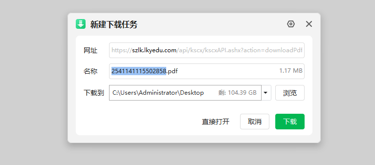 (七)核对录取基本信息后,点击“下载录取通知书”、查询到本人录取通知书后,下载PDF文件保存或打印(A3单面或A4双面)