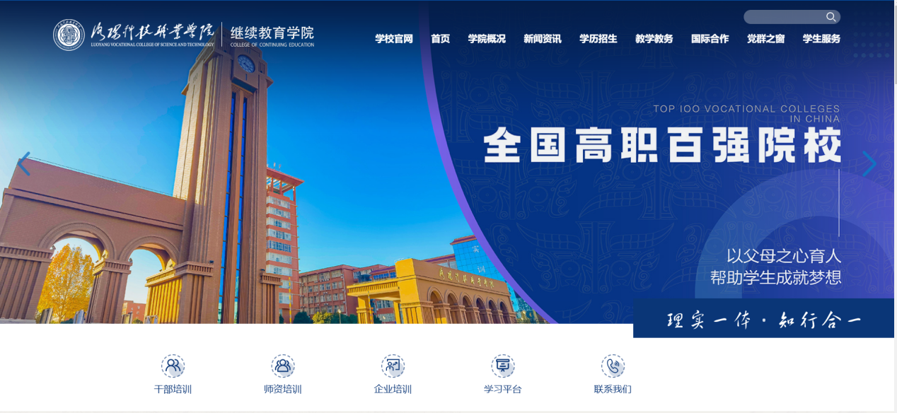 (三)登录“洛阳科技职业学院继续教育学院”官网:https://cce.lku.edu.cn/